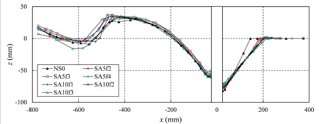 图3.3.2 各种工况下中心剖面最终冲刷坑形态