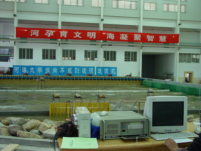 现有实验港池一个,尺寸为长60m×宽39m×深1.3m,配有多向不规则波浪造波机(蛇型生波机)系统,造波机系统总造价242万元,共有84块宽40cm×高80cm独立推波板,推波板行程±30cm,总宽33.6m,能模拟波周期0.5s~2.5s,波向范围0~±30°,最大波高0.2m的不规则波。港池还配有DJ-800多参数波浪试验量测系统、波浪压力和总力仪、船舶撞击力系缆力测量系统、六分量仪、港池视频监控系统、大跨度电动测桥等量测设备。该港池具备承担港口、海岸及近海工程整体波浪模型试验研究能力。