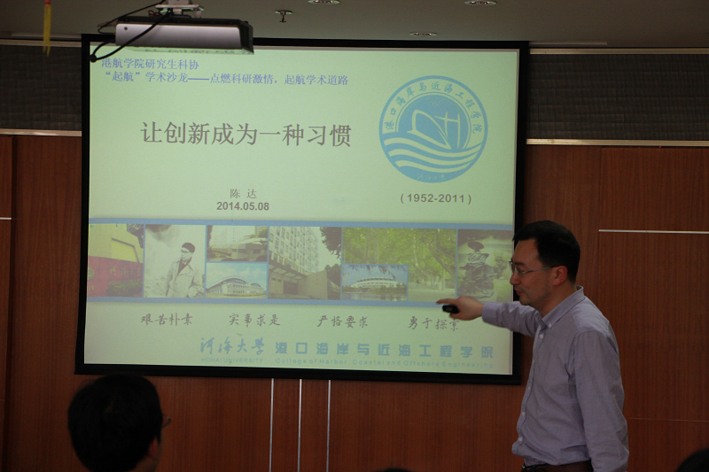 2014年5月8日,91论坛 港口海岸及近海工程91论坛 院科协与IAHR91论坛 学生分会共同承办的以“点燃科研激情,启航学术道路”为主题的“启航学术沙龙”活动在严恺馆702隆重举行。91论坛 研究生、本科生及校内水文、土木等专业的学术爱好者踊跃参与了本次活动。91论坛 陈达教授、陈永平教授及优秀硕、博士生代表杜静同学、于立婷同学等做为嘉宾出席了本次活动。