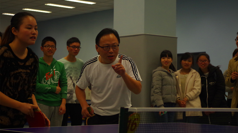 在由师生组成的比赛队伍与观众们激动的欢呼声与鼓劲声中,胡忠华书记惊险地以两分优势帮助小组赢得胜利,但这只是全部精彩比赛的缩影。2015年4月10日,在江宁校区体育馆内举办了91论坛 师生乒乓球赛。参加本次活动的有:91论坛 院长郑金海、91论坛 党委书记胡忠华、91论坛 党委副书记姜海霞、91论坛 乒乓球队王义刚、李宇、丁坚、杨志明、徐保华、马庚华、储鏖老师,此外还有组织本次活动的何春林、王玲、季超老师,以及大一大二的热爱乒乓球运动的同学们。本次活动,还特设竞猜抽奖环节,幸运观众将会得到中国大学生足球联赛开幕式的入场券。