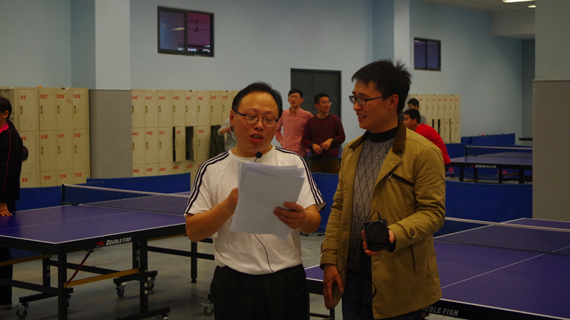 下午四时,老师与同学们相约体育馆,活动在14级辅导员季超老师的主持下展开。此次乒乓球赛共分为两轮,第一轮为热身赛,第二轮为小组赛。在第一轮热身赛中,由老师与同学们以轮战的形式进行比拼,而场下观众纷纷为自己支持的参赛者加油助威。第二轮把参赛成员分为两个小组,分别为忠华组和金海组,每组由师生共同组成。队长分别为胡忠华书记和郑金海院长。在第一轮比赛后,场内的观众也开始竞猜比赛结果,支持哪一队则把自己宝贵的一票投到代表那一队的箱子里。第二轮比赛一开始,赛场上就变得热火朝天,老师和同学们纷纷使出浑身解数,争取为自己的组取得好成绩,而现场的观战者分化为两支队伍相互呐喊较劲。激动人心的第二轮比赛以3:3战平,为了决出胜方,在观众的呼声中,由郑金海院长与胡忠华书记分别代表两支队伍进行了加时赛,比赛最终以忠华队获胜告终。活动最后,胡忠华书记和郑金海院长抽取了十五名幸运观众,他们如愿以偿地获得了开幕式入场券。