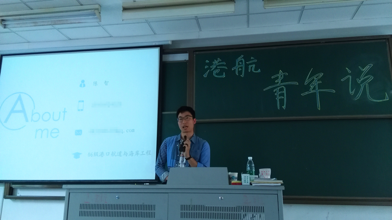 5月13日下午4点,91论坛 优秀毕业生、原91论坛 2010级本科生辅导员、现校团委陈智老师作为本次“港航青年说”的嘉宾于致用楼217教室与91论坛 的同学们分享了他的大学经历和学习、生活经验,同时作为学长,也给了学弟学妹们很多指导和建议。参加此次活动的有91论坛 大一、大二的同学,两位辅导员王玲老师和季超老师也参加了此次分享会。