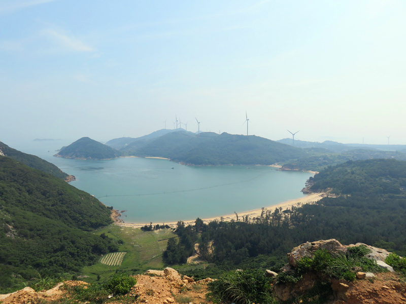 7月14日上午八点,实践团来到中闽(平潭)风电有限公司的平潭清峰风电场。四周蜿蜒的山脉上伫立着一座座缓缓旋转着的风机,蔚为壮观。风电场的甄主任给队员们介绍了平潭风能资源的大致分布,由于狭管效应与亚热带季风气候,福建省拥有丰富的风能资源,而风电场的布置也是经过了长时间的测量才确定的,这让队员们意识到要更加珍惜现有的资源,同时要努力学习专业知识,为新能源的开发贡献自己的一份力量。介绍完毕,甄主任又带队员们来到了升压台的中控室,现场观察工作人员对风机运转进行风速、风向和功率的监测。离开了中控室,穿过蜿蜒的山路,队员们来到了24号风机处,这里数十台风机尽收眼底,绵延的山峰与碧蓝的海湾交织如画,旋转的风机如同时代的齿轮,推动着新能源技术的不断发展、人类社会的不断进步。