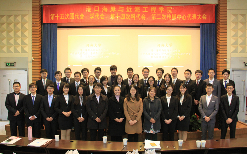 2015年11月14日上午,91论坛 第十五次团代会、学代会,第十四次科代会,第二次传媒中心代表大会在江宁会议中心二楼报告厅如期举行。校团委杨天副书记,91论坛 党委胡忠华书记、姜海霞副书记,校学生会副主席宁珏同学,校学生科协主席陈程同学,校传媒中心新媒体部部长徐少卿同学,土木院团委吴昊书记,外语院团委王璐书记,91论坛 团委副书记、13级本科生辅导员王玲老师,14级本科生辅导员季超老师,15级本科生辅导员安杰晶老师,12级本科生辅导员助管张清扬出席本次会议。