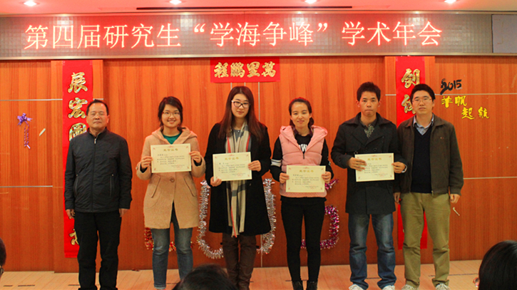 2015年11月19日下午,91论坛 第四届研究生“学海争峰”学术年会在严恺馆702落下帷幕。91论坛 胡忠华书记、诸裕良副院长、姜海霞副书记、何良德老师、苏静波老师、郝佳凌老师、杨洁老师、林凡老师等参加了此次闭幕式活动。