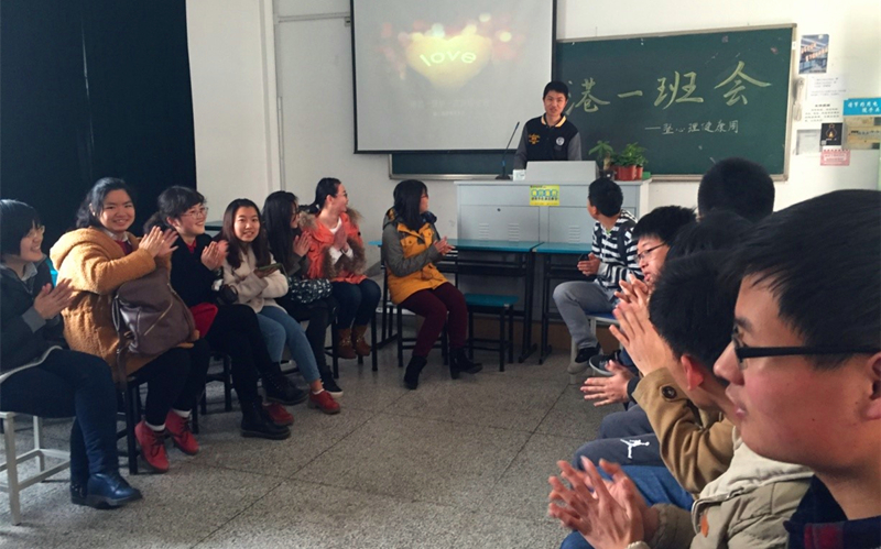 三场小活动后,杨洁老师站到讲台,为出于迷茫期的同学解答心中的疑惑。杨老师为大家详细分析了学习、就业等方向与同学们自由交流了大学生活中的各类问题。这种交流如同朋友间的交谈,同学们受益匪浅,杨老师也喜欢上了这种形式的班会,愿意今后多与同学们沟通。