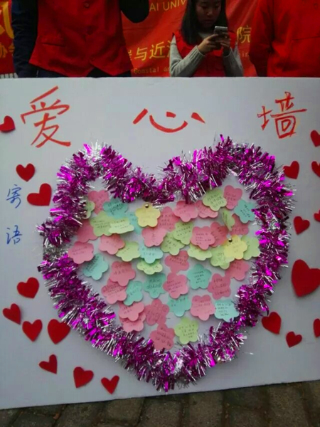 的退休老教师们来到摊位前,对此次活动表示支持与鼓励。戴着干净的眼镜,拿着洁净的手机离去的同时,爱心墙上也留下了满满的、真诚的祝福,其中有在校学生,有路过的爷爷奶奶、叔叔阿姨,也有同龄的孩子。在活动还未正式结束时,爱心墙已经布满了纸条,志愿者们将在活动结束后收集好送到孩子们的手中,将爱心传递给孩子们。