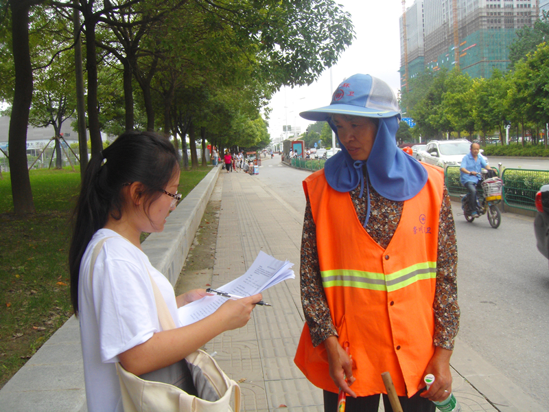 实践活动前半段在南通进行,实践调研团与当地的南通大学合作,双方各自取长补短,联手为改善环卫工人工作环境、生活条件尽一份力。通过针对市民和环卫工人的调查问卷及采访,实践调研团了解到南通市内环卫工分为事业编环卫工及企业合同工。企业合同工由私人老板雇佣,与事业编环卫工相比,不仅工作时长长,而且缺少社会保障,没有五险一金,更没有高温补贴以及清凉油、棉手套等福利性质的防护措施。二者基本工资普遍相差不大,但是据市民透露,某些企业合同工的基本工资远远低于事业编环卫工,着实令人心寒。然而通过几天的实践调研,尤其是在记录环卫工人一天的活动中,调研团发现即便是待遇相对较好的区域,环卫工人的工作环境,人身安全问题依旧不容乐观。活动最后,实践调研团向南通市政府递交一份建议信,希望在政府帮助下,缩小环卫工人间的待遇差,改善其工作环境并排除安全隐患,同时呼吁人们尊重环卫工人的工作,为他们创造城市认同感、归属感。