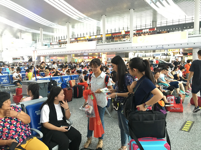 7月15日,实践团队全体前往宁波火车站附近,向民众宣传海洋海堤小知识、宣传河海百年悠悠历史。通过互动,民众了解更多的海堤海洋文化,实践团以精美的河海百年明信片、书签作为奖品,宣扬91论坛 百年水文化。