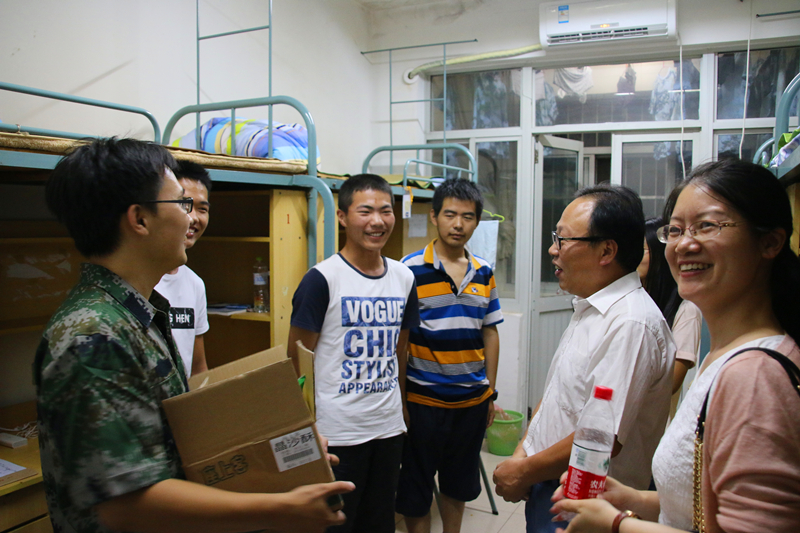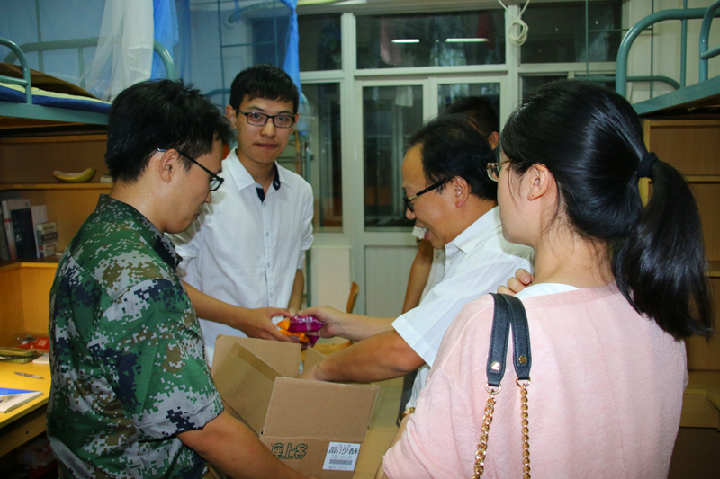 派送月饼活动于21点30分正式开始,首先派送的地点是16级女生宿舍。胡忠华书记,姜海霞副书记和辅导员季超老师带着精心准备的月饼逐一访问了各宿舍。胡书记亲切地问候了在异乡求学的学子们,一边分发月饼,一边询问起了学生的近况,军训期间的情况,对宿舍的意见等等。听到胡忠华书记能准确说出大多数同学的个人信息,同学们纷纷表示很感动,也感激91论坛 领导对他们16级新生的关心和帮助。