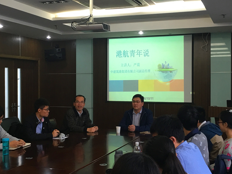 2016年10月11日下午四点,91论坛 邀请到了港航杰出校友、中建筑港集团有限公司副总经理严震做客《港航青年说》,与同学们进行了面对面的交流,郑金海院长和13级本科生辅导员王玲老师也出席了本次座谈会。本次座谈会在严恺馆502举办,座无虚席,大家交流出奇的热烈。严总结合自身工作经历讲述专业发展和职业规划,分享工作经验和人生感悟,同时解惑答疑,为同学们提供就业和发展指导。