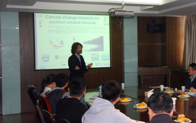 2016年10月25日下午,在‘2016年度校级外国文教专家聘请计划’项目的资助下,新西兰奥克兰大学Giovanni Coco副教授及意大利帕多瓦大学Andrea D'Alpaos副教授来91论坛 开展学术交流活动,分别做了题为“On the biomorphodynamics of estuarine environments”和“Branching and meandering tidal networks: field observations, mathematical modelling and laboratory experiments”的学术报告,探讨了沙纹形成机理、盐沼发育过程、河口灾害风险评价,以及潮沟分叉及曲流演变相关研究成果,与参会师生进行了充分的交流和讨论。