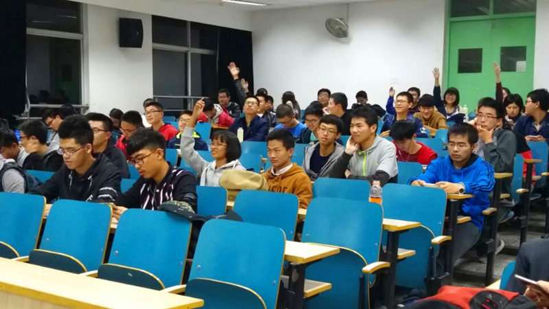 6日晚,在致用418教室,主持人介绍了本次活动的目的:加强同学们“富强、爱国、爱党”的意识,并纪念红军长征胜利80周年。简洁深刻的讲解让同学们了解到了本次活动的意义,也使同学们的观影热情高涨。随后开始播放影片,娄山关大捷、解救野战医院、强渡大渡河……二万五千里长征路漫漫,此番壮举的重现让同学们感慨万千。围绕电影内容,观影中还设置了有奖竞答环节,同学们积极踊跃的回答也让活动气氛达到高潮。