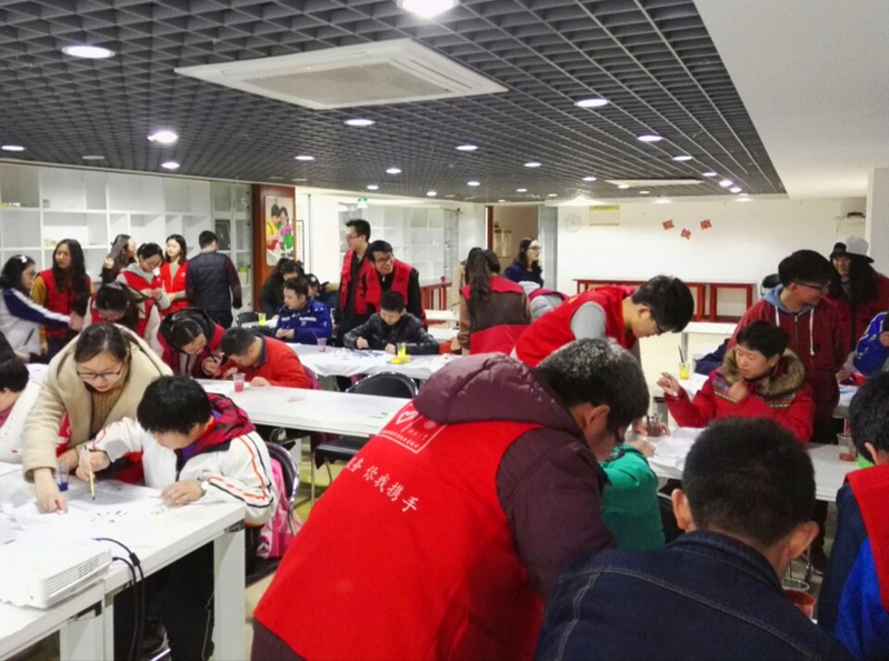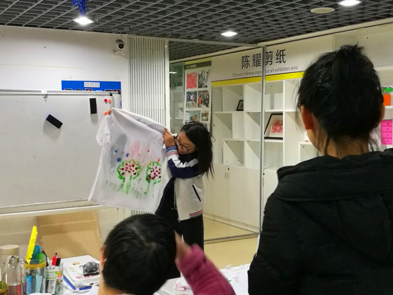志愿者们到了宁馨阳光家园,一个小队留在宁馨阳光家园与孩子们一起完成文化衫彩绘,一个小队前往附近人流量较多的地带宣传世界水日相关知识。在宁馨阳光家园内,志愿者们与孩子们一一配对,与孩子们交流水文化、水资源保护等小知识,并引导孩子们用水彩、画笔等在文化衫上创作出自己对水的理解和感悟。社区街道上,志愿者门向市民介绍世界水日,讲解生活中的惜水、护水小妙招,并邀请市民在世界水日的宣传横幅上签名。