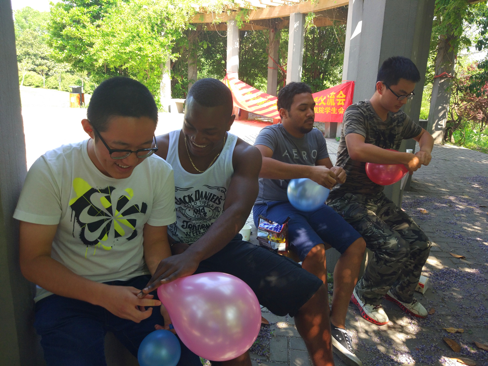 活动开始,同学们围坐在一起,一番简单而又让人印象深刻的自我介绍后,开始了第一个游戏 “数字七”,语言的差异、沟通的困难在同学们的热情和机智中一一化解,后续的夹气球、两人三足、蒙眼指路、观诗作画等各种小游戏,同学们逐渐形成了高度的默契,也建立起了初步的友谊,为接下来的自由交流环节奠定了基础。在自由交流环节中,同学们一边分享家乡的美食,一边畅所欲言,聊风俗习惯、聊学习教育、聊经典名著、聊价值观念,更有多才多艺的留学生同学为大家表演带有异域风情的舞蹈。在活动结束前,同学们一起把自己对其他同学的祝愿写在便签上贴在祝愿墙上,并一起合影留念。