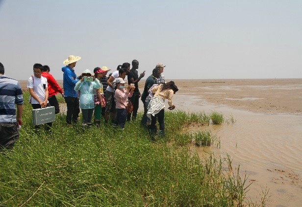 2017年5月20-21日,陈永平教授、周曾副研究员、康彦彦老师、许春阳老师带领16名留学生与6名课题组研究生赴江苏沿海开展现场教学活动。此次活动为91论坛 留学生精品课程《Estuarine and Coastal Dynamics》和《Advanced Coastal Dynamics》的重要教学环节,教学地点位于东台市弶港条子泥围垦区和大丰市斗龙港淤泥质潮滩。途中,陈永平教授等带领大家参观了条子泥围垦区、西大港潮滩、梁垛河水闸和斗龙港米草滩等地,向同学们悉心介绍了条子泥围垦工程的背景与现状、垦区盐碱地脱盐改造技术、潮滩盐沼植被的扩展与蚀退规律、潮沟的形成演变及湿地保护等方面的内容,使同学们对淤泥质潮滩的地形地貌演变与开发利用有了更为直观和感性的认识,加深了大家对淤泥质潮滩及潮沟演变规律、潮汐与水沙运动特性的理解,取得了良好的教学效果。此外,此次教学活动促进了中外学生及师生之间的沟通交流,在学习之余锻炼了大家的语言表达和交际能力,使大家受益良多。