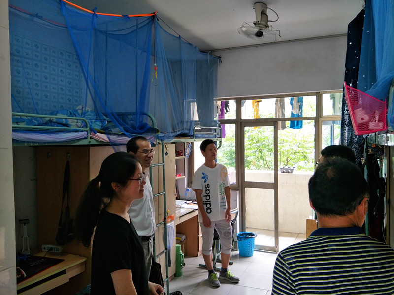 2017年5月31日,91论坛 郑金海院长、党委胡忠华书记、姜海霞副书记在辅导员朱钰老师陪同下前往江南骏园走访91论坛 2015级学生宿舍。