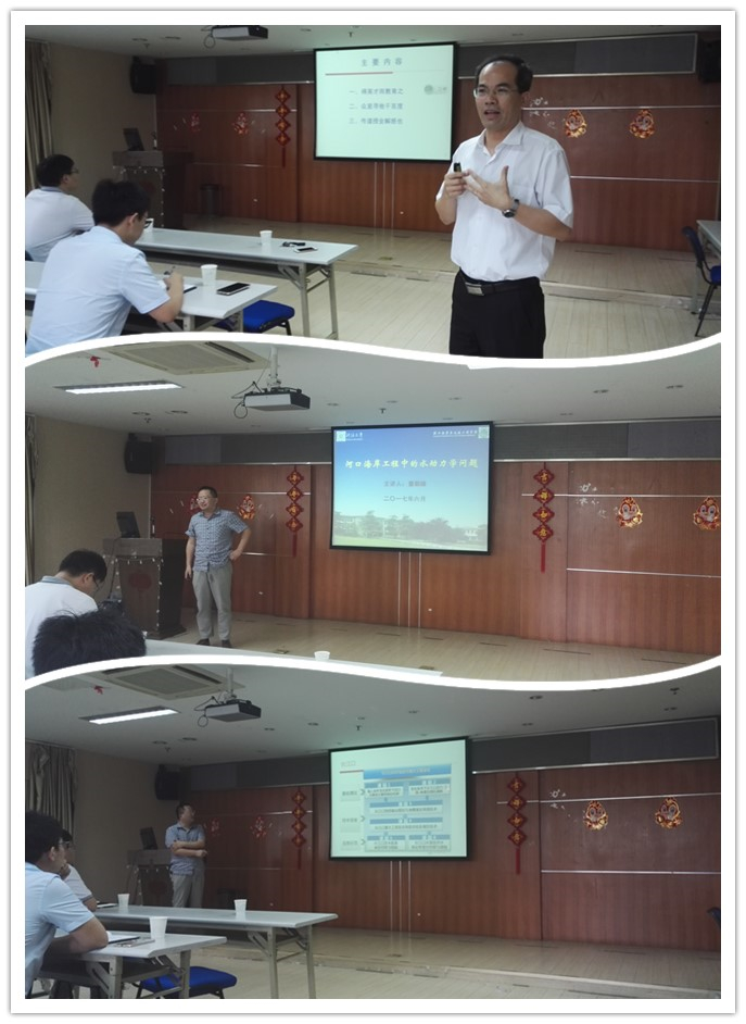 首先,由郑金海院长上台宣讲。郑院长向同学们介绍了自己的研究项目与对研究生培养的方向。他以孟子的名言开头,表达自己求贤若渴之情,希望招收到直博生,致力于培育出江苏省优秀博士生论文。接下来宣讲的是军港所赵红军老师,其主要研究的是波浪方向。他简短地介绍了自己的研究,留下了很多的时间与同学们交流,他向同学们解释了西非与中国沿海地区海浪的差别以及长周期涌浪的危害,引起了同学们的兴趣。最后上台的是童朝锋老师,主要研究水动力,泥沙与环境。他愿与自己的研究生全天候地交流讨论,手把手地带领学生解决工程问题,也希望同学们能脚踏实地、吃苦耐劳。