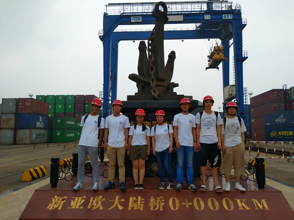 8日,调研团来到新东方码头。着好安全帽,夏总带领队员们登上桥吊并参观控制室。随后,随程达学长前往新亚欧大陆桥东端起点,并听学长讲解新亚欧大陆桥在连云港港发展和改型中重要战略作用。午后,程达学长又带领队员们前往中哈国际物流基地,参观电子监控系统,这是连云港港转型的最直接的产物,其使箱体如快递般可查。并与公路港进行无缝对接。在讨论到监控系统的建设和转型的再发展的规划时,工作人员向队员们介绍了铁水联运与哈过间的全方位信息化共享计划。