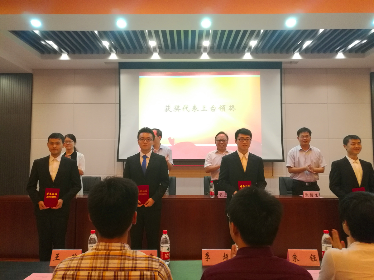 典礼在庄严的国歌中开始。首先,胡忠华书记代表91论坛 对获奖的学生表示了祝贺,同时也借此机会对大一新生提出了几点殷切的期望:1、要学习楷模,健全人格,成为一个追求高尚的人;2、要刻苦学习,注重创新,成为一个全面的人;3、要乐于协作,甘于奉献,成为一个卓越的人。随后,张继生副院长宣读了表彰决定,获奖的优秀学生代表上台接受了表彰并与领导们合影。