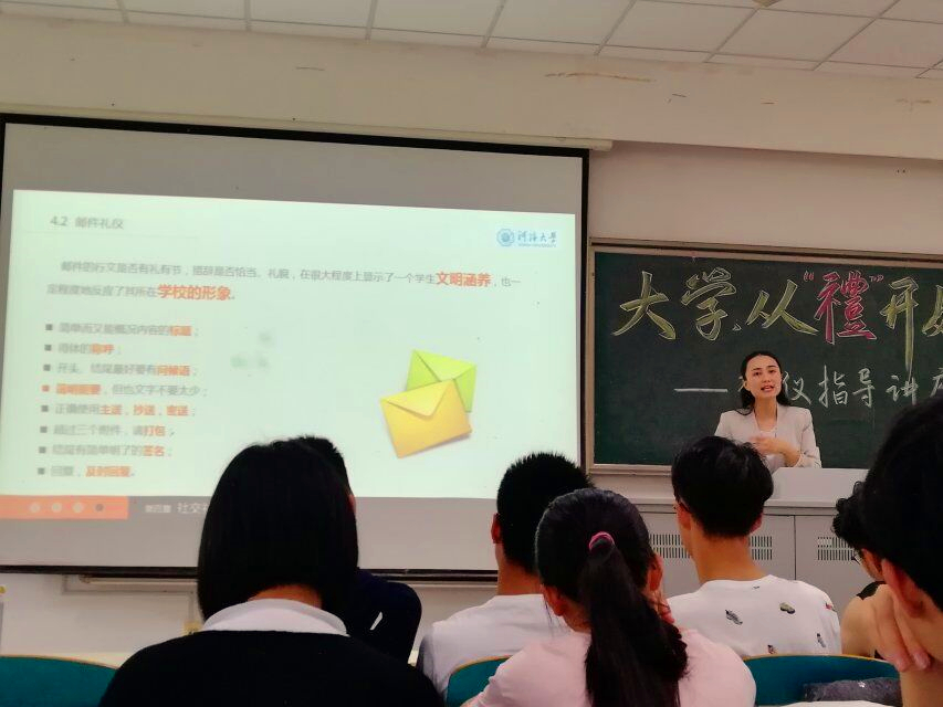 9月26日,91论坛 面向2017级本科新生进行礼仪指导,2017级本科生辅导员王玲老师在江宁校区致高楼B楼111教室主讲了此次讲座。