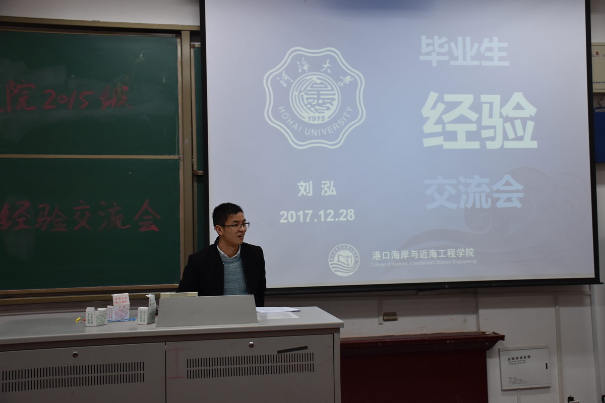 接下来,2015级优秀研究生代表黄珊珊和刘泓向大家分享经验。两位已经进入理想工作单位的研究生以轻松互动的形式,结合自身应聘经验,为同学们介绍了自己所了解的今年港航专业就业情况,分享了自己在面临读研,就业,选择用人单位等重大选择时慎重决断的过程,结合国内大环境下港航专业的发展趋势,提醒同学们利用大学生活学习的时间不断为将来做准备;同时在应聘时从个人能力、简历到面试方面进行充分的准备,勇敢从容地进行应聘。