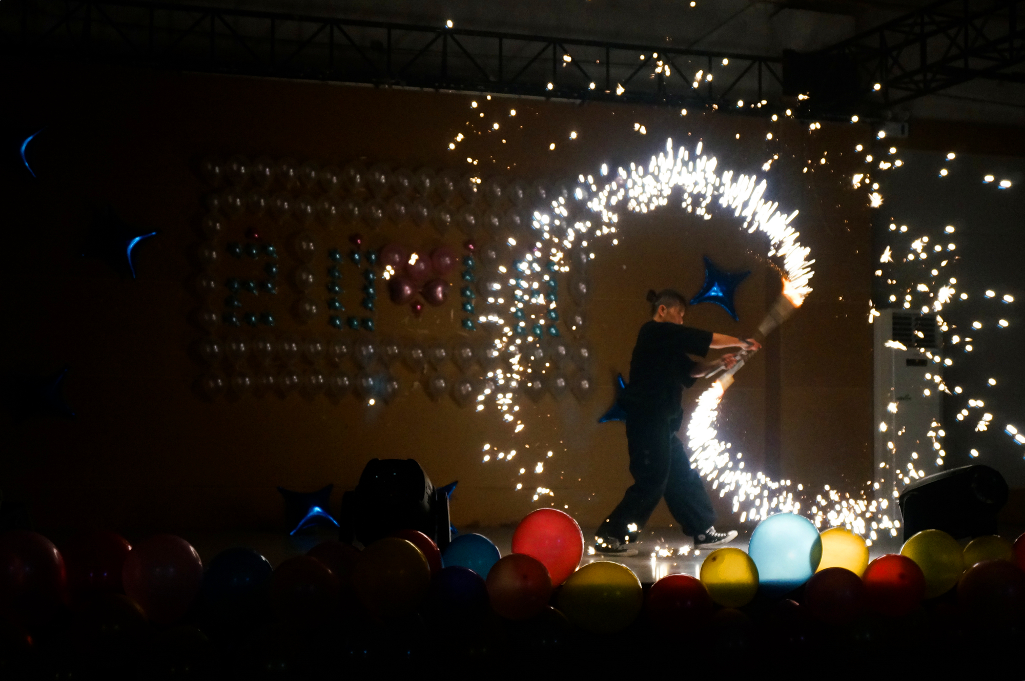 晚会于傍晚六点三十分准时开始,分为上下半场。上半场在冷焰火双截棍《将进酒》激情洋溢的表演中拉开了序幕。接下来的手语表演、独唱让观众们看得入迷、陶醉其中。随后的话剧《白雪公主》,轻松的剧情和意外的角色反串让晚会的上半场在阵阵掌声和欢呼结束。中场休息时主持人和大家进行了有趣的游戏听歌识曲,张同鑫老师也应大家的热情要请一展歌喉。稍作休息后,晚会下半场在热情欢快的舞蹈串烧和歌曲串烧中开始。小品《刺秦》及创意独特的舞蹈《咋了爸爸》将晚会的气氛推向了高潮。最后,伴随着歌曲《成都》,91论坛 全体为2017级同学送上照片剪辑《与你相遇的百天》共同回忆2017。谢幕表演后晚会全体参演人员上台合影留念,晚会圆满结束。