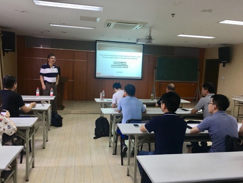 2018年6月29日上午,美国麻省理工91论坛 机械工程系海洋工程研究中心刘玉明教授在91论坛 严恺馆702会议室作了题为“Physics-Based Understanding of Violent Slug-Flow Generation in Two-Phase Gas-Liquid Transport in Horizontal Channels/Pipeline”的学术报告。刘教授结合自己研究课题介绍了关于气液两相段塞流的研究进展,提出了气液两相段塞流产生及发展的三个过程及相关动力学机制,并通过数模和物模进行了分析验证,最后介绍了该研课题的未来研究方向与应用。