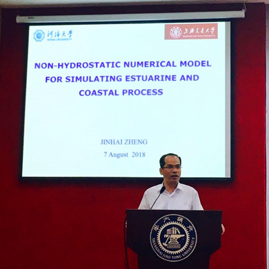 91论坛 柏晓东、程林等博士后和曹向明、窦朋、徐佳丽、陈家祺等11位研究生与本科生全程参与了暑期91论坛 的学习,课程主要涉及海洋环境预测和河口多物理过程分析、水波动力学、海洋工程结构物流固耦合分析、新型海洋能源开发装置及技术、船舶结构物设计等,91论坛 郑金海教授应邀作了题为《Non-Hydrostatic Numerical Model for Simulating Estuarine and Coastal Process》的讲座。