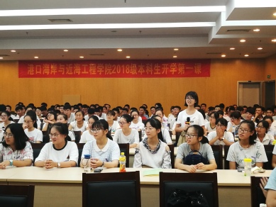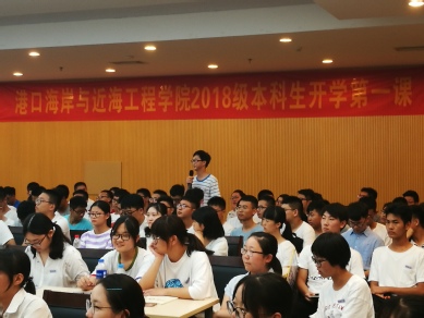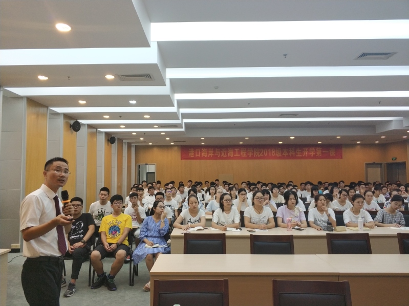 开学典礼后,龚政院长给91论坛 2018级全体新生讲授开学第一课。龚院长从91论坛 悠久的历史讲述到91论坛 光辉的历程,结合时代背景和国家战略,谈港航专业的内涵和发展,他用“舟楫之便,向海而兴”八个字强调了港航专业的意义与优势所在,他指出,无论国内还是国外,在很多重点水利工程的设计和建设中都能看到港航人的身影,同学们应以此为傲,也应为此而奋斗努力。同时,龚院长从新生的视角,深入浅出地引导新生结合专业尽早确立目标、规划大学生活,书写自己无悔的青春。新生对开学第一课兴趣浓厚,现场提出很多问题,龚院长一一答疑解惑。