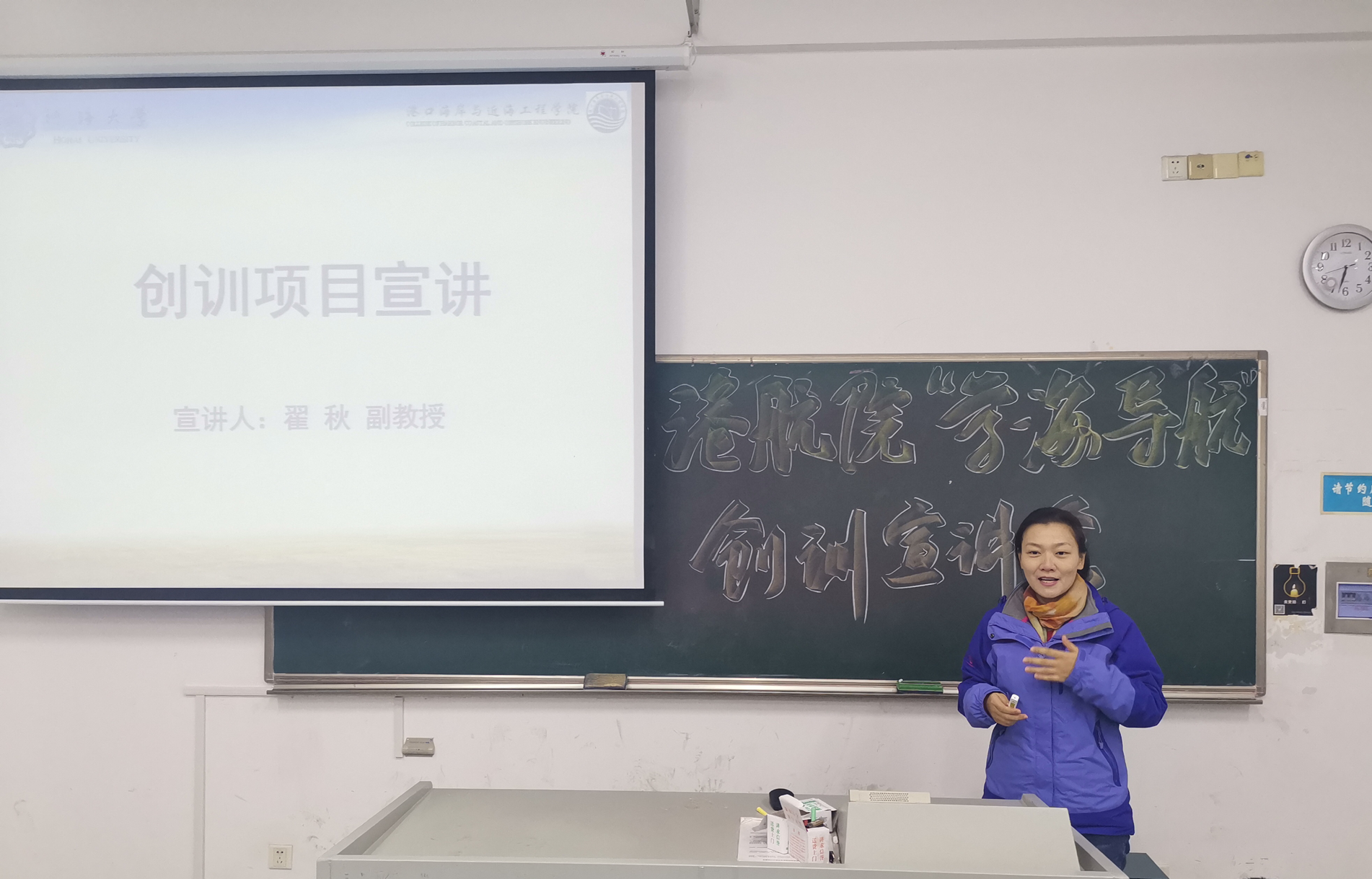 翟秋与章家保两位老师做主讲人,以他们在学术方面的在研项目为依托,为同学们进行创训项目的讲解。