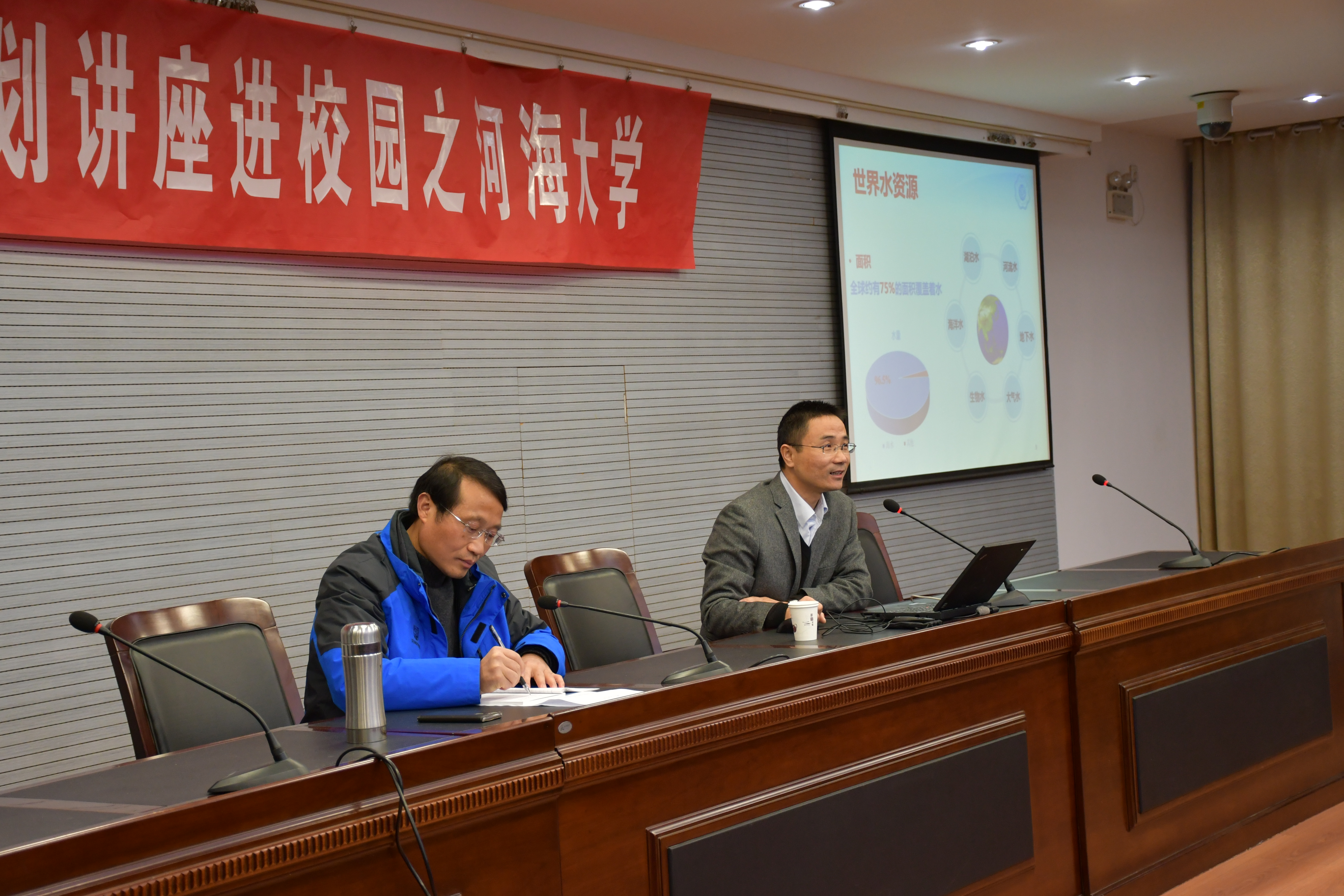 龚院长以《水之问》为题,由“地球上有多少水资源?”“海洋资源有哪些?”等问题引入,从专业的角度向大家介绍了我国的海洋资源、航运资源以及滩涂资源;除此之外还以港珠澳大桥、洋山港两个视频为例向同学们展示了91论坛