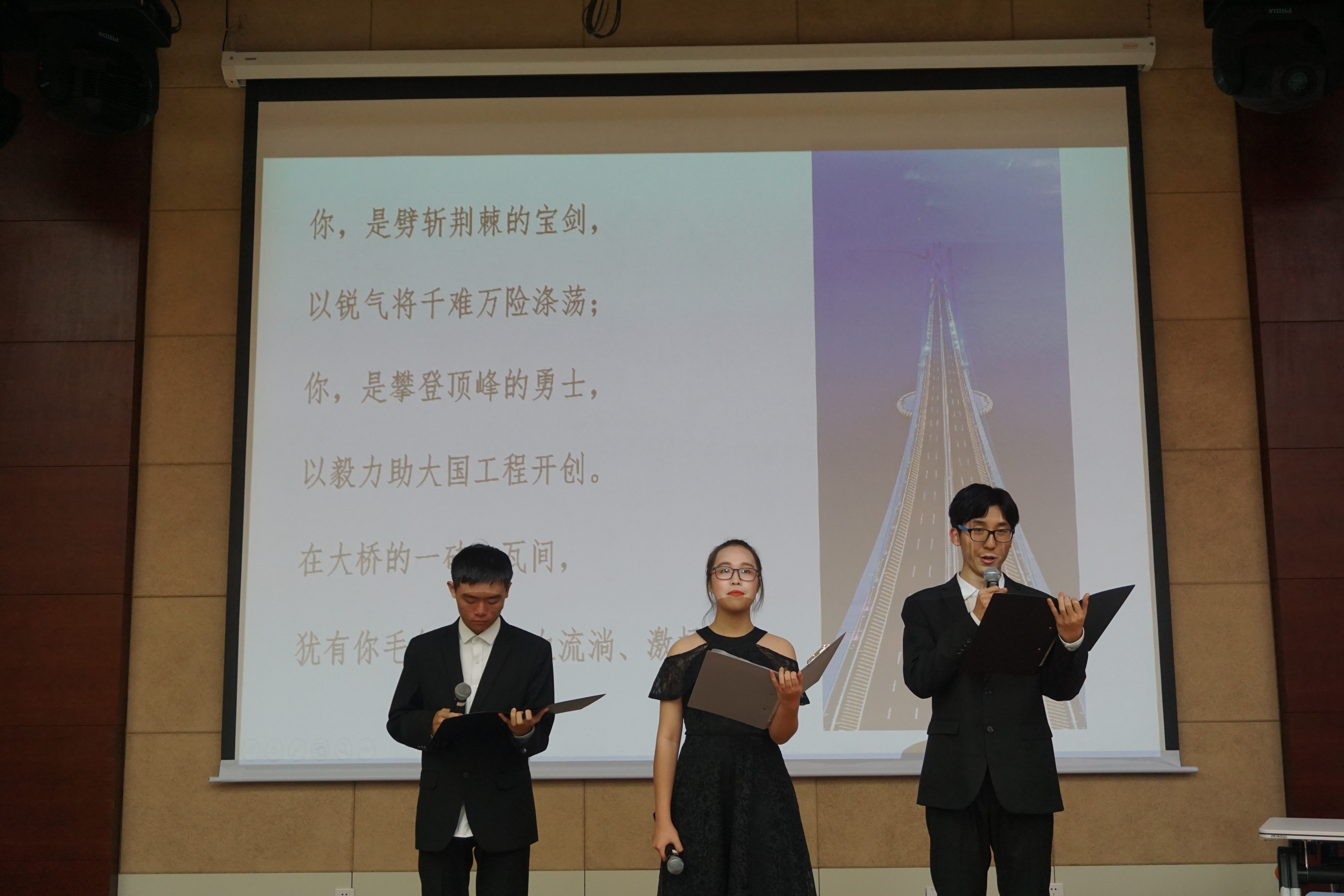 的同学用演讲或朗诵的形式分别介绍了卢永昌、朱利翔、朱峰等校友的事迹,有讲述卢永昌三十多年坚守岗位的心酸历程和其从未改变的爱国初心的演讲《一生所爱,一以贯之》;有追寻朱利翔所践行的“牺牲个人,回报社会,奉献国家”人生准则的演讲《以工匠之名,铸中国之梦》;还有深情歌颂港珠澳大桥讴歌伟大祖国的朗诵《盛世中国》等。选手展示结束后,王宁可老师和陈智老师分别进行了点评,认为同学精神状态好、参赛作品创意好以及最终的活动成效好。
