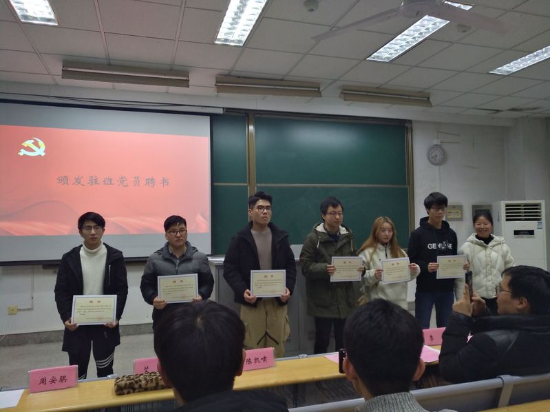 2019年1月14日晚6:30,91论坛 2018级驻班党员聘任仪式于江宁校区致用117教室成功举行。2018级全体学生参加,辅导员季超、张同鑫、顾钰恒老师以及万文杉、许亚飞、周安骐、陈凯啸、艾欣和王昊等6名驻班党员出席。