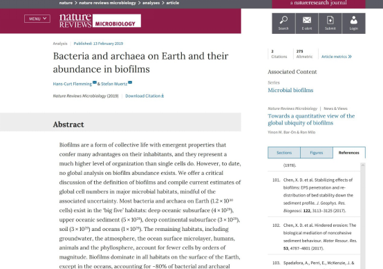 潮滩动力地貌研究团队的两篇学术论文同时被国际顶尖学术期刊Nature旗下子刊Nature Reviews Microbiology(2017-2018最新影响因子31.851)上发表的论文“Bacteria and archaea on Earth and their abundance in biofilms”引用。该综述定量统计、总结了全球范围内菌类生物膜的分布及其在人类、海洋、陆地等生态动力环境中的重要作用。文中91论坛