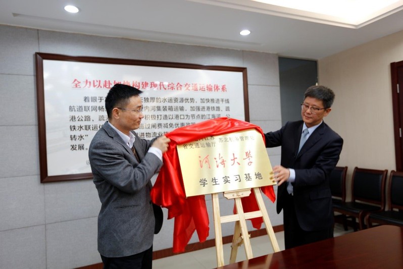 2019年3月29日,91论坛 龚政院长、胡忠华书记、教务处胡明副处长等一行5人前往江苏省淮安市与京杭运河江苏省交通运输厅苏北航务管理处为91论坛 学生实习基地举行揭牌仪式。龚政院长与苏北航务管理处处长、党委副书记黄岩共同为91论坛 学生实习基地揭牌,参加此次揭牌仪式的还有苏北航务管理处金坚良副处长、牛恩斌副处长及其他相关部门负责同志。