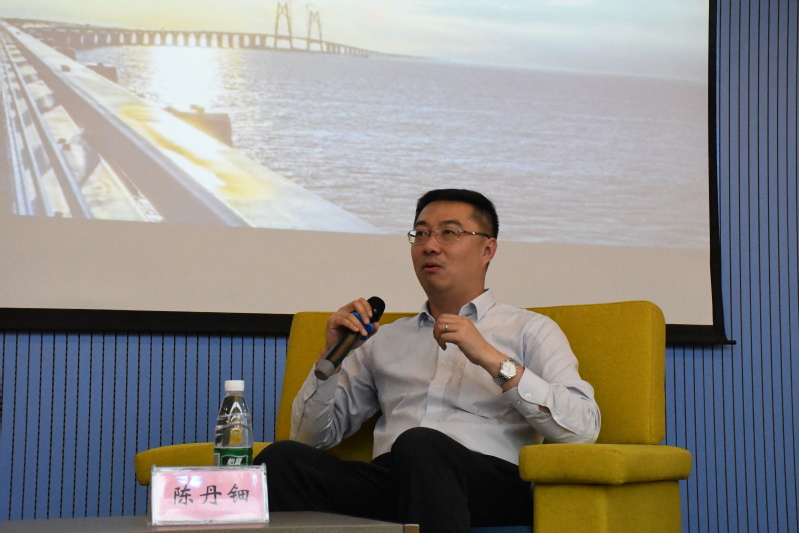 讲座结束后,主持人郭恩斗对陈经理作简短采访。关于是否有必要攻读研究生学位,陈丹钿经理和安兆峰主任一致认为二者各有优势,一切选择应基于职业理想;关于企业所需毕业生的具体品质,陈经理以港珠澳大桥的成本主管为例,总结出有规划、有条理、心仔细、爱提问等关键点。