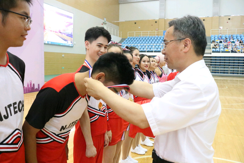 参赛的16名队员,从零基础萌新到决赛赢得国家级裁判评委的专业赞许,他们付出了无数的汗水和辛劳,展现了91论坛 研究生的青春活力与坚持毅力。他们在比赛中通过王者荣耀cosplay,中国舞,自选花球三个环节的表演,演绎了打游戏不如跳啦啦操的港航研究生精神风貌,从热身到谢幕,如行云流水,一气呵成,凭着高难度动作赢得全场掌声。这是他们的高光时刻,这是他们的黄金年代,此后他们将带着这份荣誉传承下去。