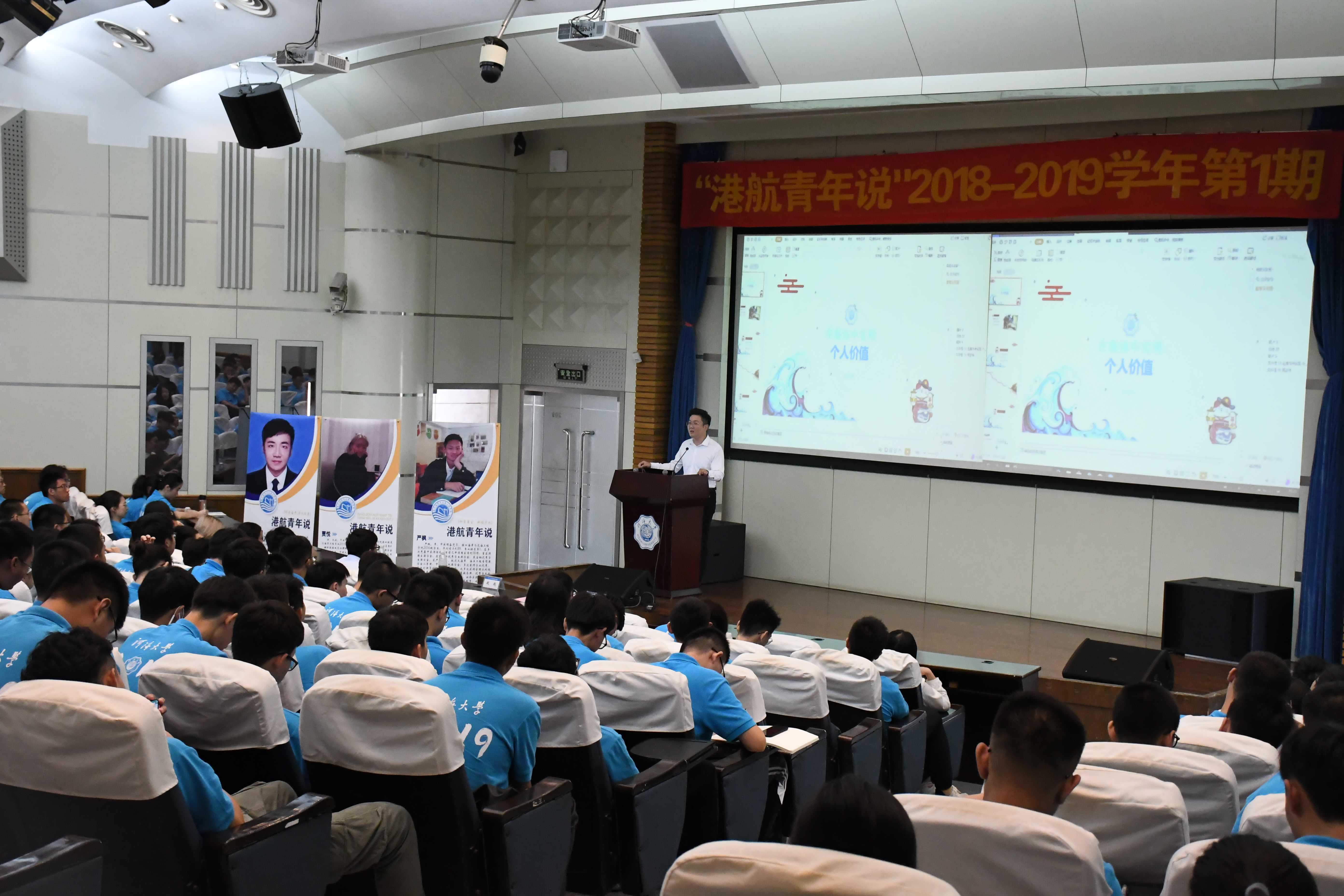 8月30日上午9点30分,91论坛 “港航青年说”2019—2020学年第1期在江宁会议中心二楼报告厅成功开讲。此次讲座邀请到2015级本科生贾悦、2016级本科生严枫、陈诗佳、高志伟以及2017级研究生林晨,就学业、科技竞赛、科技创新、社会工作等方面与2019级新生进行经验交流。