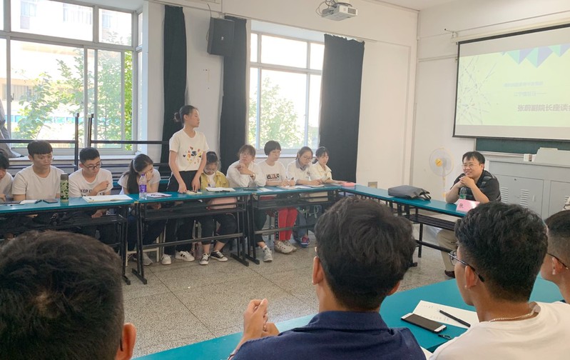 在此次座谈会期间,张蔚副院长与海洋资源班新生进行了面对面的交流与解惑,首先联系自身经历为同学们提出在课程学习中“宽基础”等相关建议;随后指出:海洋资源开发技术专业符合发展“海洋强国”和“一带一路”的国家需求,具备很大的发展空间与机遇。新专业的建设会在学习国外先进技术与经验的同时,充分发挥自身特色,围绕国家重大需求,培养适应社会经济发展需要的高素质复合型人才。最后,张蔚副院长对同学们所提出的专业就业方向、研究方向、保研率、专业发展成熟度及与国外发展差距等问题进行了详细的解答,同学们受益匪浅,加强了同学们对海洋资源开发技术专业关心问题的了解。