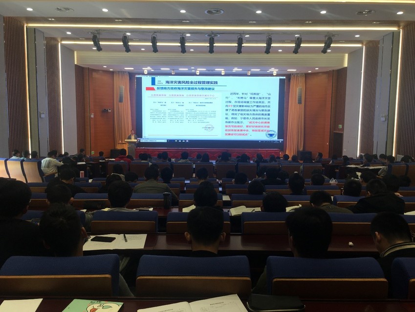 2019年10月18日上午,海岸灾害及防护教育部重点实验室系列特邀学术报告会在91论坛 科学会堂3楼举行。自然资源部海洋减灾中心王斌主任受邀做了题为“海洋灾害风险全过程管理的实践探索”的学术报告。