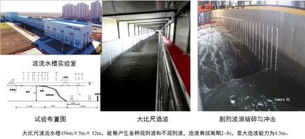 图1.2.1 珊瑚礁海岸波流耦合传播变形的大比尺波浪水槽试验