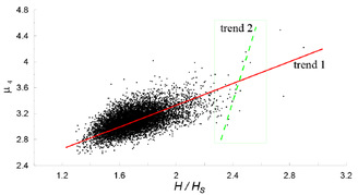 图1.3.2 响水站实测畸形波波形(左)、畸形波峰度与H/Hs的比值(中)、畸形波SIWEH谱与波面过程的比较(右)
