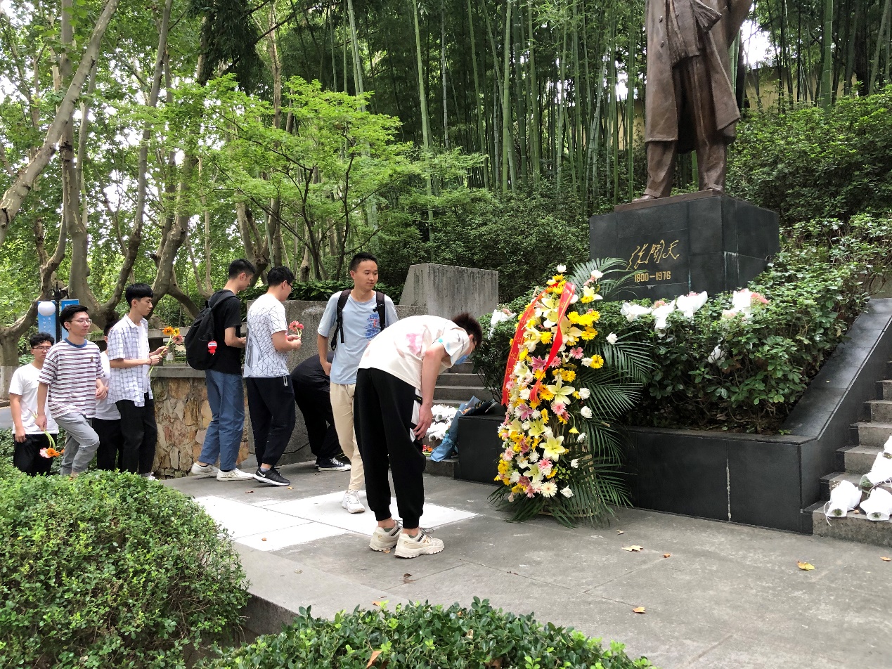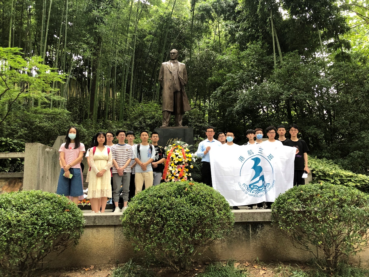 参观完陈列馆,港航3班全体同学在张闻天铜像处进行了献花与缅怀仪式,用简单的形式与礼仪表达了对先辈的无限敬仰与感怀。