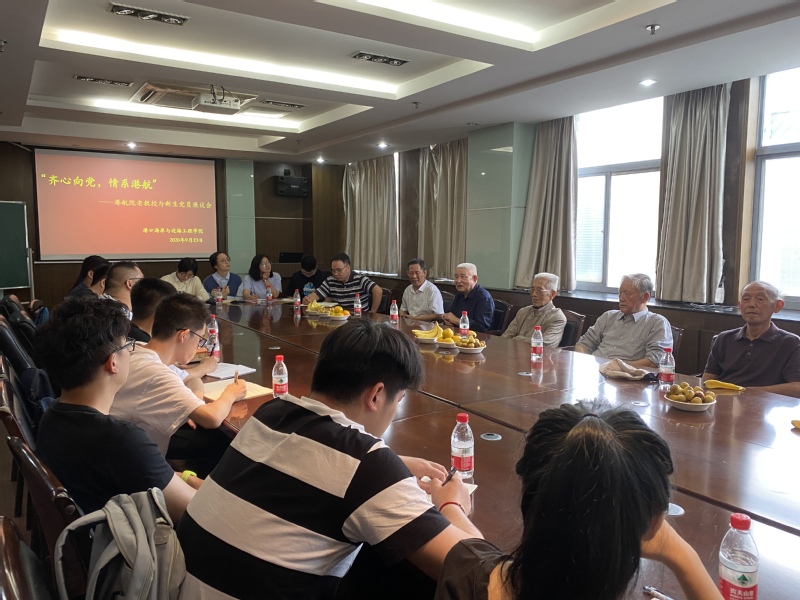 9月23日下午,91论坛 “齐心向党,情系港航”——老教授与新生党员座谈会在严恺馆502举行。座谈会邀请到葛明达、洪广文、鲁子爱、舒红缨、唐耿星、徐金环、张东生七位老教授与2020级研究生新生党员进行交流,91论坛 党委书记胡忠华主持座谈会,党委副书记沈国军出席。