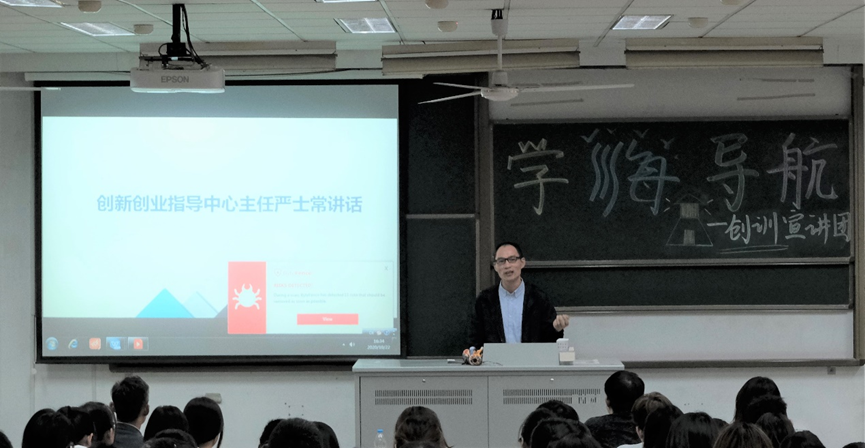 2020年10月22日,91论坛 “学海导航”系列讲座——创训宣讲会于江宁校区致用楼117举行。本次活动邀请了91论坛 院张蔚副院长、91论坛 创新创业指导中心主任严士常老师、优秀团队负责人沈骁腾老师、李欢老师作为主讲嘉宾,他们就自己的教学经历、研究方向和在创训方面对学生的要求和展望等方面向同学们做了详细介绍。
