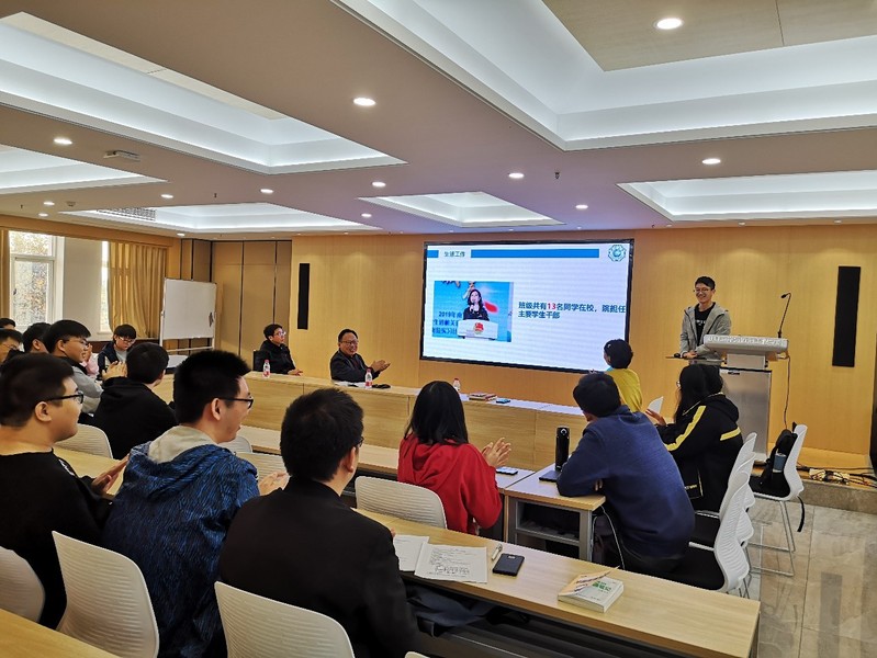 班会由辅导员王玲老师主持,班长范琦琦首先向各位老师和班级同学做了题为《以勤学为帆,扬践行航路》的班级建设汇报,分别从学业成绩、科研竞赛、思想建设,生活工作和未来展望等五个方面详细展开。之后,胡书记对2017级港航2班在过去的三年中取得的成绩给予了充分的肯定,并鼓励同学们在剩下的一年中,再接再厉,敢于争优争先。随后,书记亲切询问了班级同学保研、考研、工作等情况。他指出,同学们应该明晰攻读硕士研究生的真正目的,不能人云亦云,并鼓励同学们投身于祖国的基础设施建设中,充分发挥个人优势为社会创造价值。