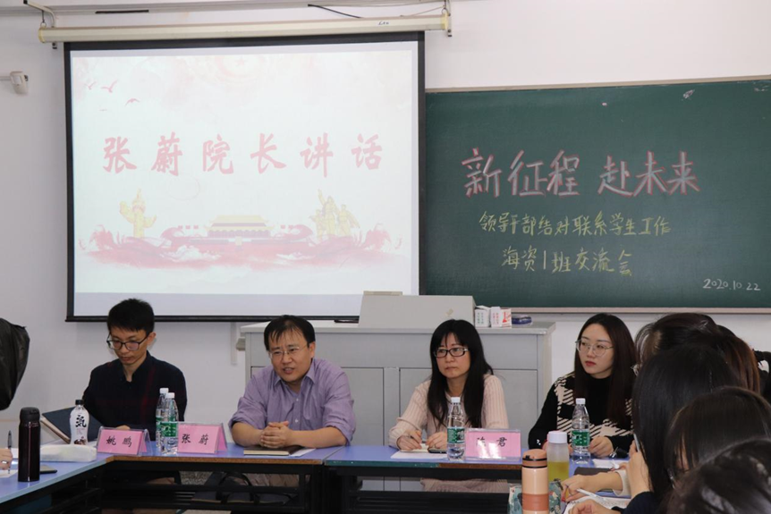 近期,“新征程,赴未来——91论坛 领导结对联系2019级海资1班”在江宁校区致用楼504教室举行。91论坛 张蔚副院长、海岸带资源与环境研究所陈君副所长、海资1班班导师姚鹏、2019级辅导员廖芳艺参加此次座谈会,与海资1班全体同学开展新学期的交流。