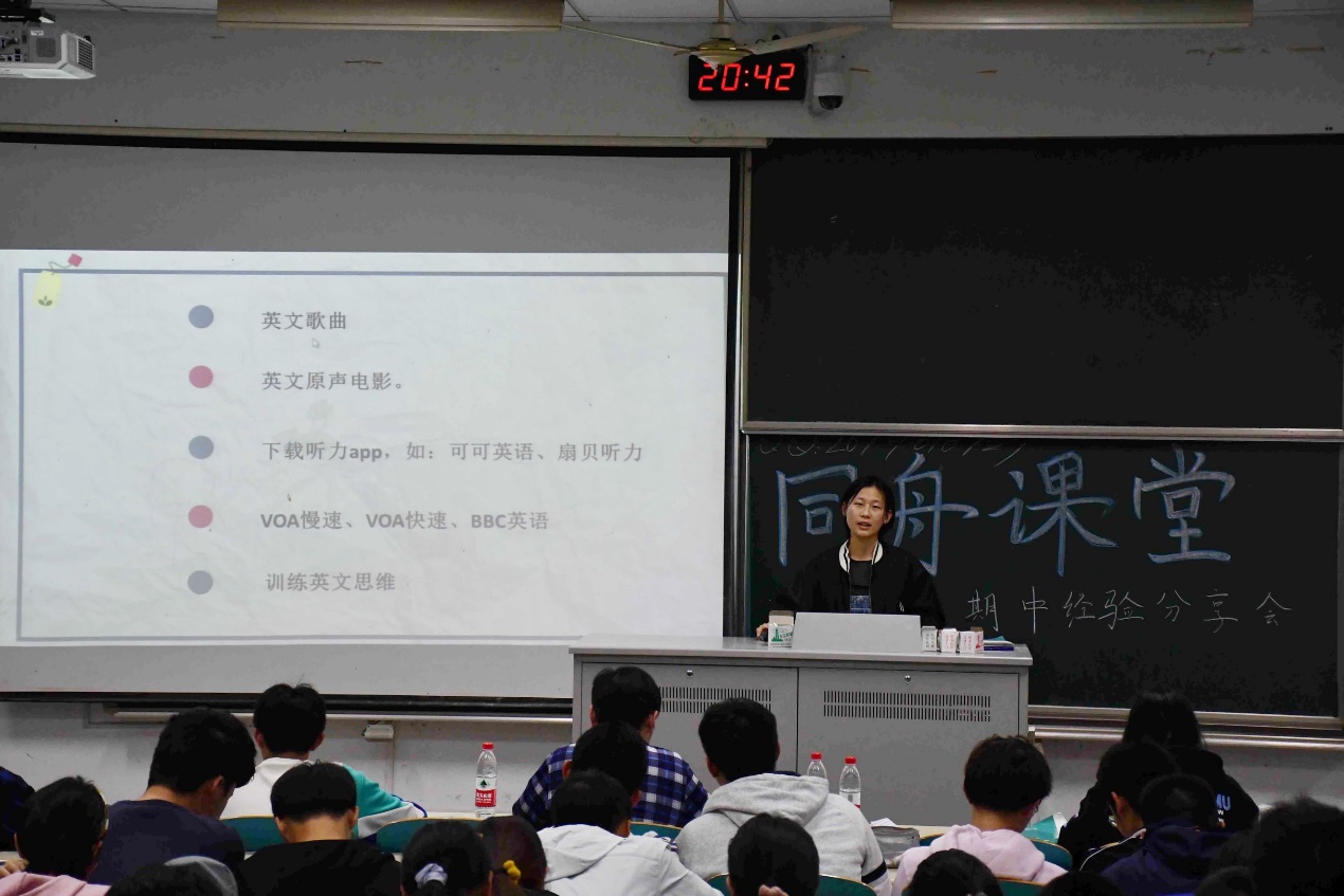 2020年11月13日,91论坛 91论坛 同舟课堂系列讲座——期中经验分享会在致高楼B111顺利举办。本次活动由91论坛 19级的张祎阳、冯基恒、杨题嘉、阮品诚和吴苏雅主讲,他们就自己的学习经验、学习方法向20级的学弟学妹们做了分享。