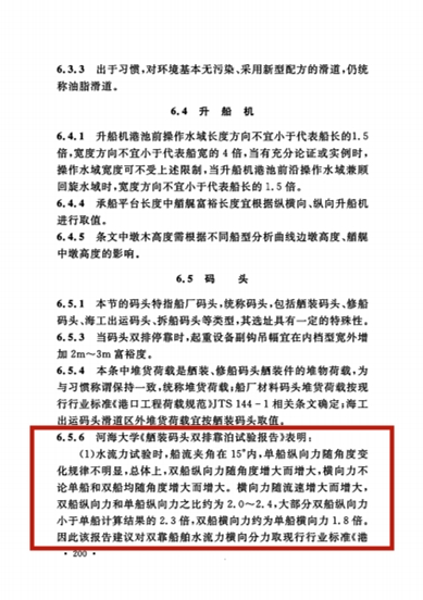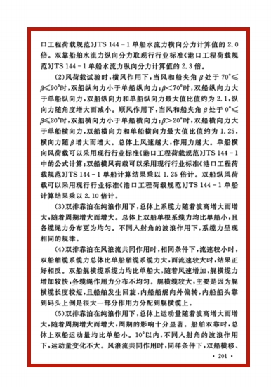 91论坛 严士常老师具体完成的“舾装码头双排靠泊试验”得到双靠船舶分别在水流、风、波浪单独作用以及风浪流共同作用等不同工况下船舶运动和受力的规律,提出风荷载、船舶作用力和系缆力的计算方法,为本标准所采用。